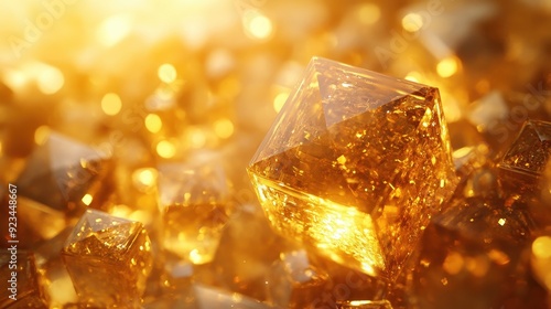 Shimmering Golden Crystals in Warm Sunlight - Close-Up of Sparkling Gemstones with Radiant Glow