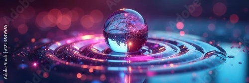shimmering liquid sphere with concentric ripples, sphere, hologram