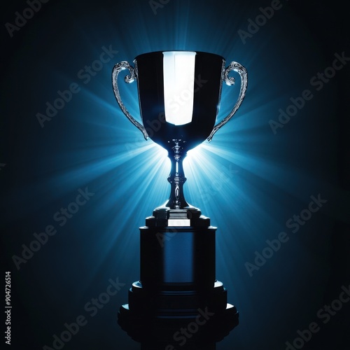 Shining trophy with a dramatic light effect, symbolizing achievement, success, and victory in competitions.