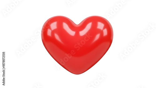 Shiny 3D red heart shape isolated on white background as a romantic symbol of love and passion for Valentine's Day wedding decoration or holiday gift illustration