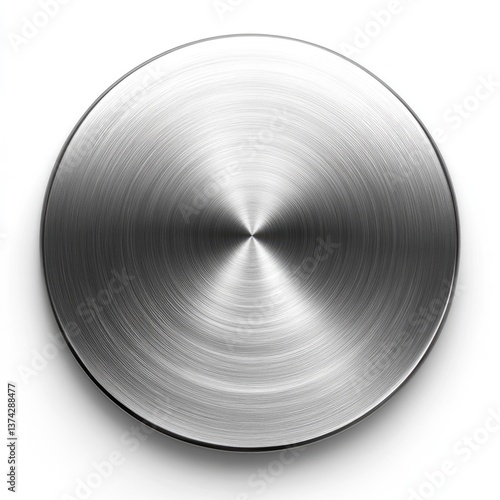 Shiny Circular Metal Disc. Polished Steel Plate Isolated on White Background
