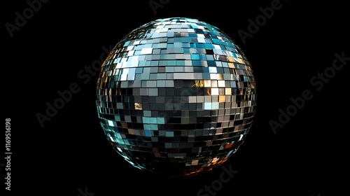 Shiny disco ball mirrored sphere party decoration nightclub celebration festive entertainment. mirrored. illustration. Nightspire. Illustration