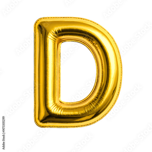 Shiny Gold 3D Inflated Balloon Bubble Font Letter D