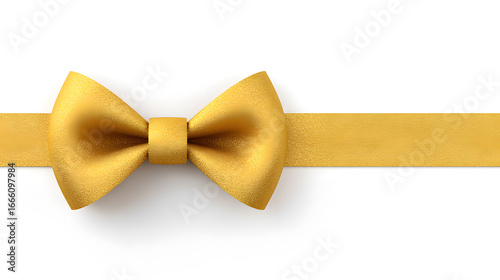 Shiny gold ribbon bow isolated on white background. Perfect for gift packaging, festive branding, or elegant design elements.