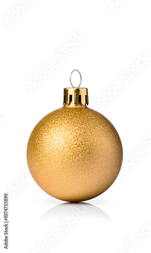 Shiny Golden Christmas ball isolated on a white background