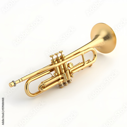 Shiny Golden Trumpet Musical Instrument: A polished golden trumpet, an elegant brass wind instrument.