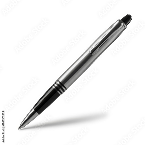 pen, ball pen, metallic, writing, office, stationery, silver, black, diagonal, isolated, white, background, object, business, design, clip, nib, tip, closeup, detail, shiny, chrome, elegant, professional, modern, smooth, instrument, school, study, journal, document, signature, creative, art, drawing, vignetting, graphic, supply, brand, style, luxury, expensive, technology, precision, ink, paper, metal