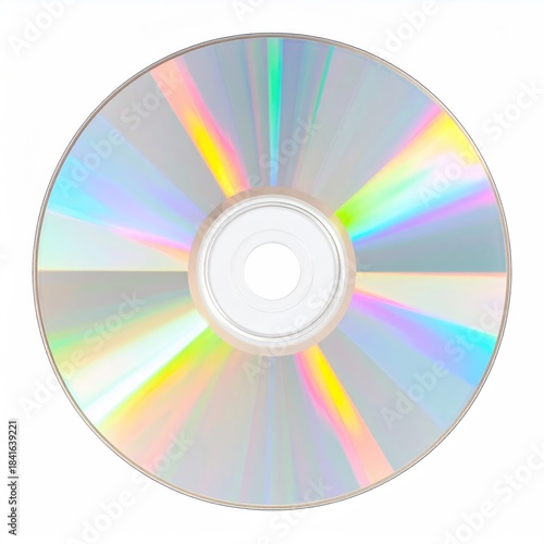 cd, disc, compact, silver, shiny, rainbow, spectrum, holographic, optical, storage, media, datum, digital, blank, empty, recordable, technology, round, circle, iridescent, light, surface, plastic, polycarbonate, audio, video, music, entertainment, information, backup, archive, preservation, white, background, isolated, object, closeup, detailed, pristine, modern, simple, minimalist, center, hole, gleam, glimmer, luster