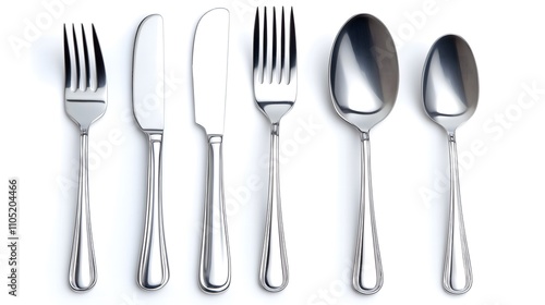 cutlery, silverware, fork, knife, spoon, dinner, food, eatery, table, eating, metal, steel, shiny, clean, polished, reflecting, bright, glossy, elegant, classic, set, collection, utensil, place, setting, serving, dining, kitchen, home, style, design, modern, equipment, item, tool, ware, image, photo, object, isolated, white, background, illustration, rendering