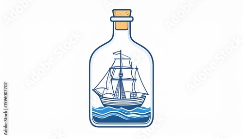 Ship in a Bottle, Vector Illustration