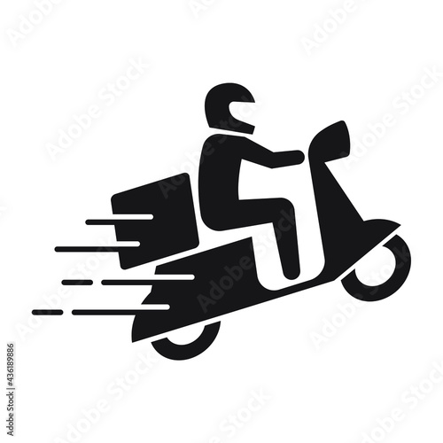 Shipping fast delivery man riding motorcycle icon symbol, Pictogram flat design for apps and websites, Isolated on white background, Vector illustration