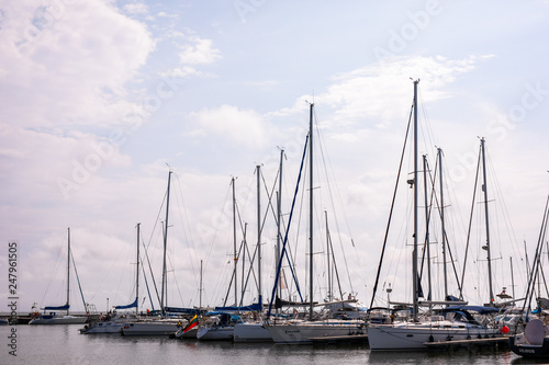 Ships at Nida resort town near Klaipeda in Neringa on the Baltic Sea in the Curonian Spit in Lithuania. Lithuania, Nida. August 2018