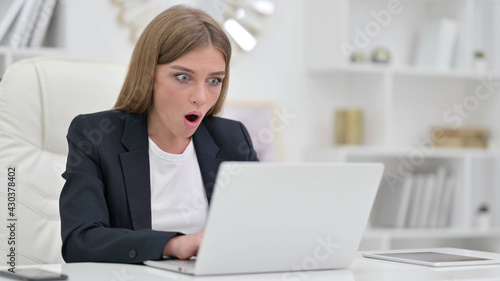 Shocked Businesswoman Reacting to Failure on Laptop in Office