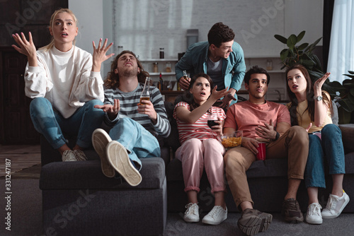 shocked friends gesturing while watching championship at home