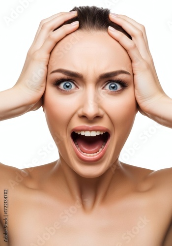 Shocked Woman Screaming with Hands on Head in Fear