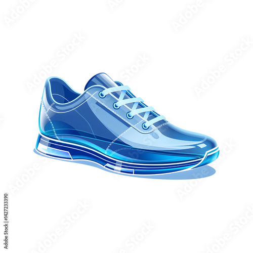 Shoes – A 3D glass sneaker, sleek and polished, transparent with soft glowing edges, futuristic minimal style, white background, icon-style illustration. Generative AI