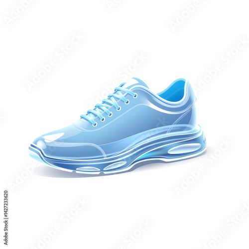Shoes – A 3D glass sneaker, sleek and polished, transparent with soft glowing edges, futuristic minimal style, white background, icon-style illustration. Generative AI
