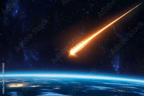 Shooting star with shimmering crystalline structure across a night sky