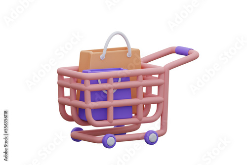 Shopping Cart and Bags isoled white backgorund. 3d rendering