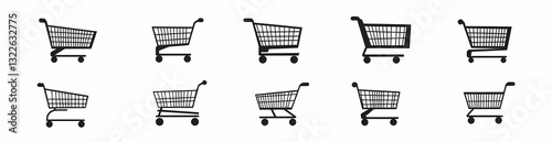 Shopping Carts Galore: A diverse array of shopping cart illustrations, symbolizing the essence of retail, grocery, and commerce, presented against a clean backdrop.