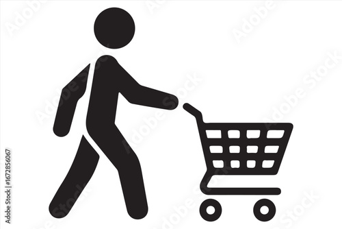 Shopping Silhouettes of People with Bags and Carts – Vector Illustration