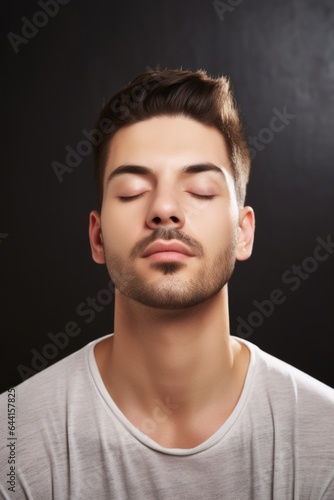 shot of a young man meditating with his eyes closed