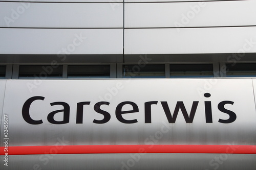Shot of carservis text on buiding wall.