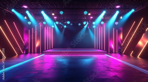 show stage with vibrant lighting and a large backdrop