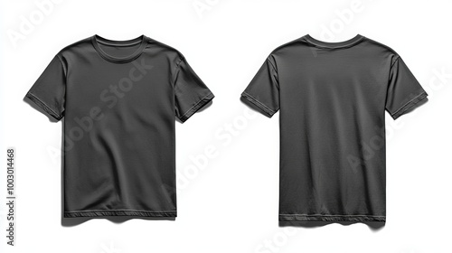 Showcase your T-shirt designs with this versatile mockup featuring front and back views of a plain dark grey T-shirt isolated on a white background. Customize the shirt with your artwork