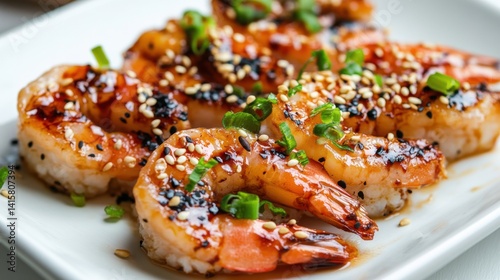 shrimp, sushi, sesame, garnish, japanese, cookery, food, seafood, plating, delicious, fresh, culinary, presentation, epicure, exquisite, dining, meal, artistic, dish, rice, raw, tasty, asian, flavorful, elegant, fine, delicacy