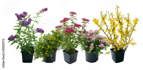 bush, forsythia, composition, banner, group, plant, leaf, deciduous, commercial, gardening, garden, shop, sale, planting, springtime, center, colours, colourful, sapling, flowerpot, pot, container, trade, breeding, gardening, buy, isolated, design, production, cultivation, day care, flower, bloom