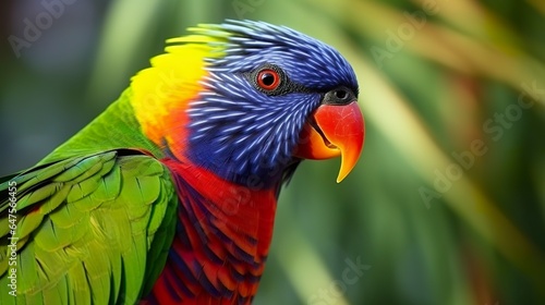 Side view Closeup of beautiful and colorful Lorikeet Green naped bird.