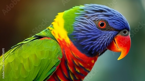 Side view Closeup of beautiful and colorful Lorikeet Green naped bird.