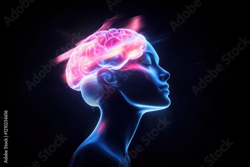 glowing, brain, illuminated, head, serene, consciousness, mental, clarity, futuristic, half face, semitransparent, glow, intellect, thought, peace, mindfulness, neon, abstract, conceptual, modern, 21st century, thinking, mind, illumination, neural, human, intelligence, sphere, tech, neuroscience, creativity, science, bright, blue, luminescent, brainpower, electric, innovation, cyber, evolution, imagination, spirituality