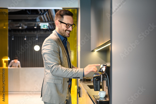 businessman, brew, hot drink, coffeemaker, eyeglass, smile, office, modern, break, half face, photogenic, professional, occupation, confident, ceo, entrepreneur, man, cup, machine, hot drink, business, corporate, drink, freelancer, job, workplace, engineer, project, manager, standing, work, marketing, beverage, caffeine, refreshment, employee, making, preparation, espresso, executive, financial, adviser, accountant, insurance agent, young, people, indoor, person, adult