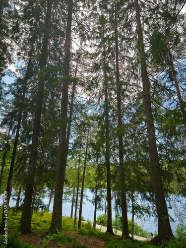 forest, tree, spruce, pine, green, nature, wood, tree branch, leaf, needle, bark, landscape, natural, growth, wild, foliage, environment, fresh, timber, wilderness, trunk, plant, seasonal, ecosystem, daylight, calm, texture, dense, quiet, beauty, evergreen, park, rural, flora, peaceful, scenic, vertical, shadow, background, wildwood, timberland