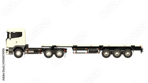 three-dimensional, automotive, cargo, commercial vehicle, container, delivery, diesel, digital artwork, distribution, empty, equipment, flatbed, freight, good, grey, hauling, heavy, heavy duty, highway, illustration, industrial, industry, isolated, logistic, long, lorry, machine, movement, profile, rendering, road, semi-truck, shipping, half face, tractor unit, trailer, transport, transportation, truck, vehicle, wheel