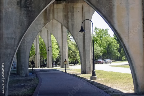 bridge, architecture, arch, stone, old, landscape, landmark, history, concrete, arch, sidewalk, path, wrought, iron, lamp, street light, decorative, scene, scenic, pillar
