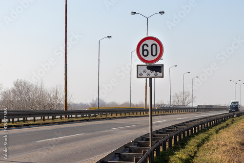 Sign "Speed ​​limit" 60 km in case of snow on the highway outside the city
