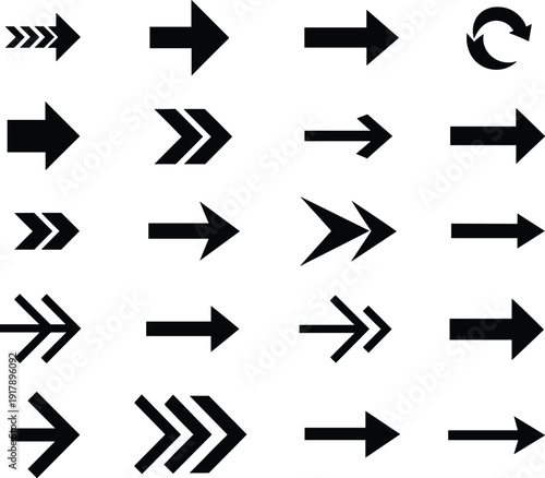 Signs and Symbols Arrow Icon Collection, Directional Navigation Arrows Vector Set, Modern Right Pointer Graphics for Web UI, Mobile App, Interface and Branding Design