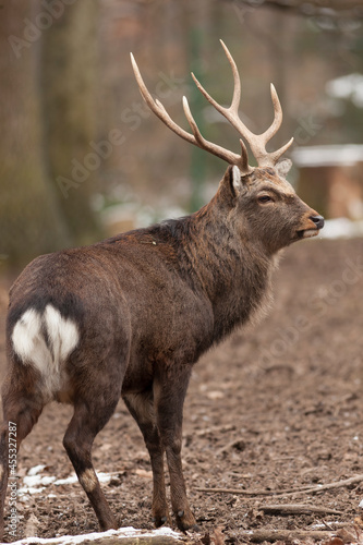 Sika deer with a thick neck mane in winter