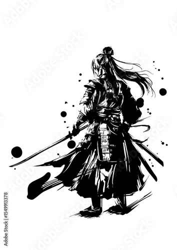 samurai, warrior, backview, sword, bushido, japanese culture, solitude, silence, quiet, emotional, poetic, strength, elegance, minimalism, black-and-white, mysterious, graceful, spirit, loneliness, tranquil, melancholy, spiritual, zen, expression