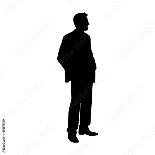 silhouette, businessman, business, professional, vector, isolated, modern, minimalist, graphic design, illustration, design element, background, marketing, contemplative, sharpened, success