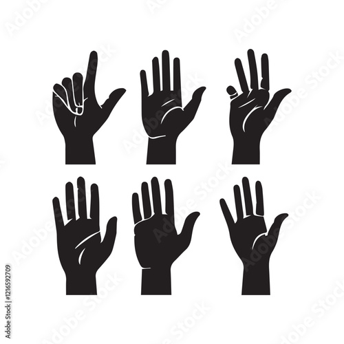 Silhouette Collection of Hands Showing Gestures Vector Illustration