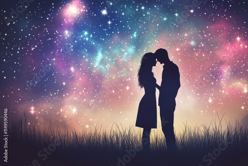love, couple, silhouette, romance, night, sky, star, galaxy, romantic, holding, hand, horizon, togetherness, magic, human relationships, connection, dream, hope, beauty, nature, landscape, scenic, wonder, awe, inspiration, celestial, cosmic, starlight, moonlight, affection, intimacy, oneness, happiness, grass, meadow, moon, people, woman, illustration, star, vector, nubes, valentine, kiss, man, family, kissing, art
