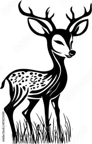 Silhouette deer grazes peacefully in meadow scenery.