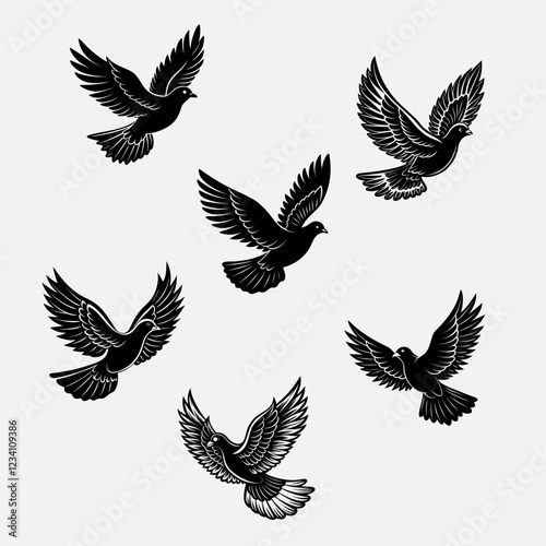 Silhouette flock of birds vector cartoon illustration isolated on white background