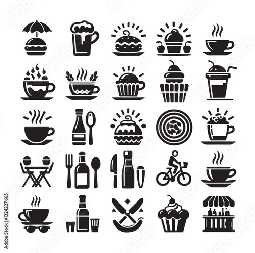 Silhouette icon set of cafe icons, restaurant icon, food and drink icon vector style on white background.