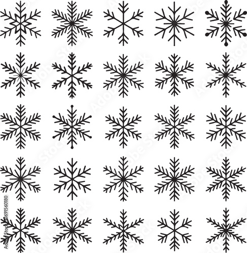 Silhouette icon set of christmas snowflake vector elements on white background