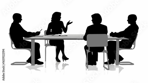 silhouette, meeting, discussion, table, people, chair, business, office, communication, team, leadership, strategy, planning, corporate, professional, workspace, collaboration, presentation, conference, seminar, group, interaction, dialogue, conversation, negotiation, agreements, contract, document, pen, gesture, woman, man, executive, manager, employee, staff, work, job, career, success